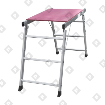 Описание и особенности: Ступени 2х3. Высота от пола до площадки 0,78 м. Рабочая высота 2,78 м. Максимальная нагрузка 150 кг. Широкая рабочая площадка 900х500 мм. Настил из фанеры обработанной антисептиком. Ступени с рифлением для безопасного подъёма и спуска. Стойки и ступени из прессованного алюминиевого профиля.